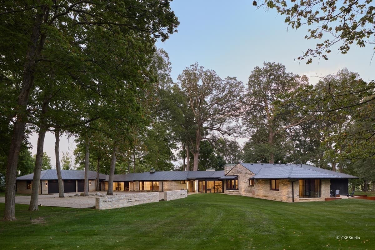 The Masons shared a desire to have a home that felt like it was a part of the landscape, not apart from it. The existing house already reflected this approach. Its distinctive stone was locally quarried, and its roofline had been oriented so as not to disturb an old growth tree.