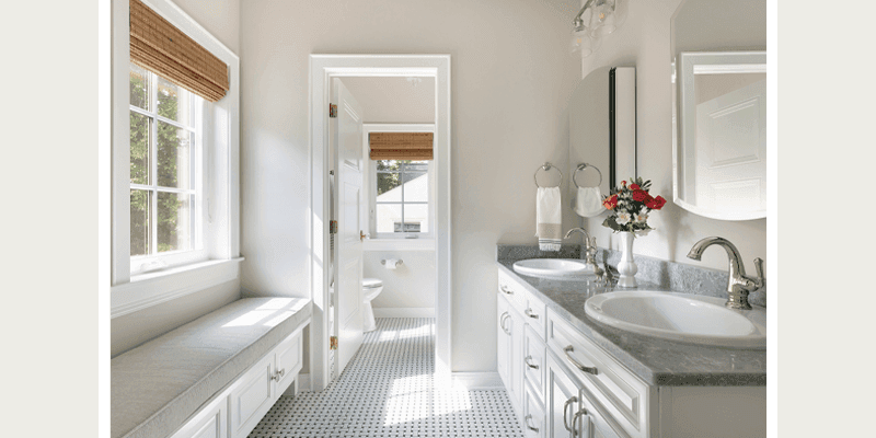 As for the interior design, that came with a measure of sustainability, too. Environmentally friendly ceramic tile, zero-VOC paint (Sherwin Williams’ apropos Unfussy Beige, to be exact) and spare use of common materials like marble were no-brainers. Adding a personal touch are rescued silver pieces Jina has collected from thrift shops. “They’re $3 at Goodwill because no one wants to polish them,” she exclaims with the giddiness that comes with a bargain. “They’re all over my house.”